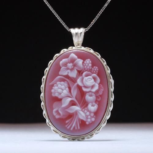 贈る相手に幸せや喜びを与えるために、ぜひこのレッドメノウカメオブローチ兼ペンダントトップをお選びください。