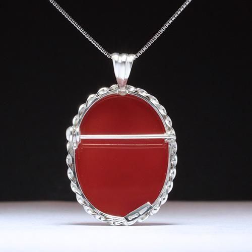 カメオ本体は縦30mm × 横23mmの程よいサイズで、レッドメノウ素材を使用しています。高級感漂うスターリングシルバー925 + プラチナコーティングのカメオ枠とバチカン部分が、エレガントな仕上がりを楽しめます。