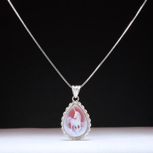 ユニコーンモチーフのレッドメノウカメオペンダントトップ
